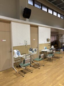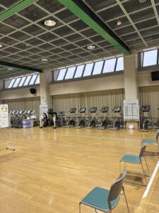 「いきがい支援」を行う北区の施設です。1階にはクーラーの効いたスペースがあり、利用者の方がおしゃべりしたりのんびりしたり、思い思いに過ごしていました。2階には体育館のようなスペースがあり、ランニングマシンや体操など運動することができます。