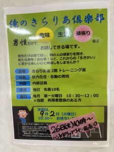 きらりあカフェ、きらりあ体操、俺のきらりあ倶楽部(男性限定)、きらりあマルシェなどのイベントも定期的に開催されています。